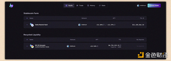 JonesDAO 在 Arbitrum 上提供了幾個一鍵式 DeFi 保險庫,當前 TVL 為 4300 萬美元。其中包括來自 Dopex 的期權金庫和 delta 中性 GLP 金庫。很高興看到將來會添加新的金庫和策略。
