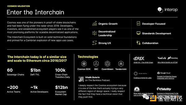 2022年,Cosmos生態系統開始獲得更廣泛的加密行業、機構參與者和科技巨頭的關注。我們認為跨鏈,利用Cosmos技術堆棧的區塊鏈和去中心化應用程序網絡,將成為行業中最有前途的環境之一。