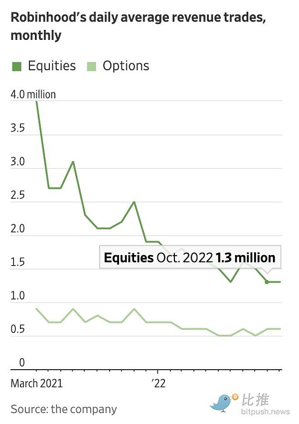 據 Vanda Research 估計,自 2021 年 12 月投資高峰以來,個人投資者的投資組合平均下降了 27%,而同期標準普爾 500 指數下降了約 13%。在線經紀應用程序Robinhood Markets Inc.的月活躍用戶數最近也跌至該公司上市以來的最低水平。摩根士丹利 ( Morgan Stanley )和嘉信理財 ( Charles Schwab Corp.) 等更為傳統的經紀公司的日均零售交易量也降至自2020 年以來的最低水平。