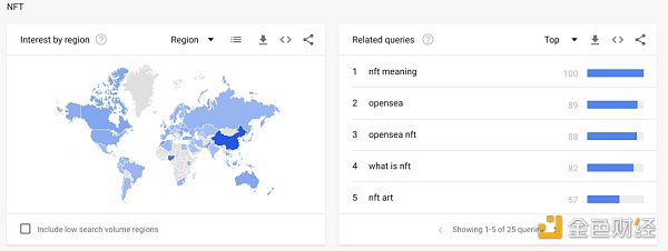 2022 年谷歌全球統計「NFT」相關熱搜詞,數據來源:Google Trends