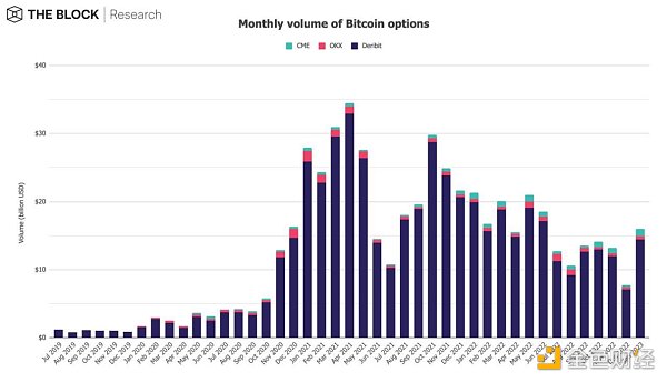 12、在加密貨幣期權方面,比特幣和以太坊期權持倉量也都出現上漲,其中比特幣期權持倉量漲幅達到116.5%,以太坊期權持倉量漲幅為71.7%。比特幣和以太坊期權交易額同樣普漲,其中比特幣期權交易額在1月份增長了107.8%,達到160億美元;以太坊期權交易額在1月份增長了54.5,達到85億美元。