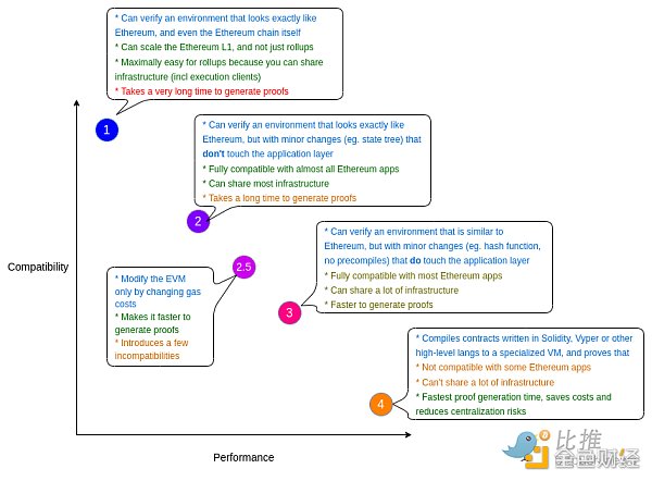 EVM 的兼容性是在語言層面進行的,這意味著它從 Solidity 到 SNARK 虛擬機。由于這個過程,它在編譯器方面增加了風險。EVM 的重點也限制了主流活動的擴展和發展,而這些活動可以通過其他類型的虛擬機來完成。