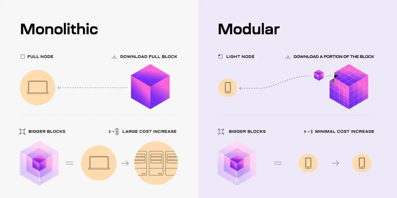模塊化區塊鏈是將這 4 層中的一個或多個外包給外部鏈的鏈,由于模塊化區塊鏈可以專注于特定元素,因此可以達到新的可擴展性水平。