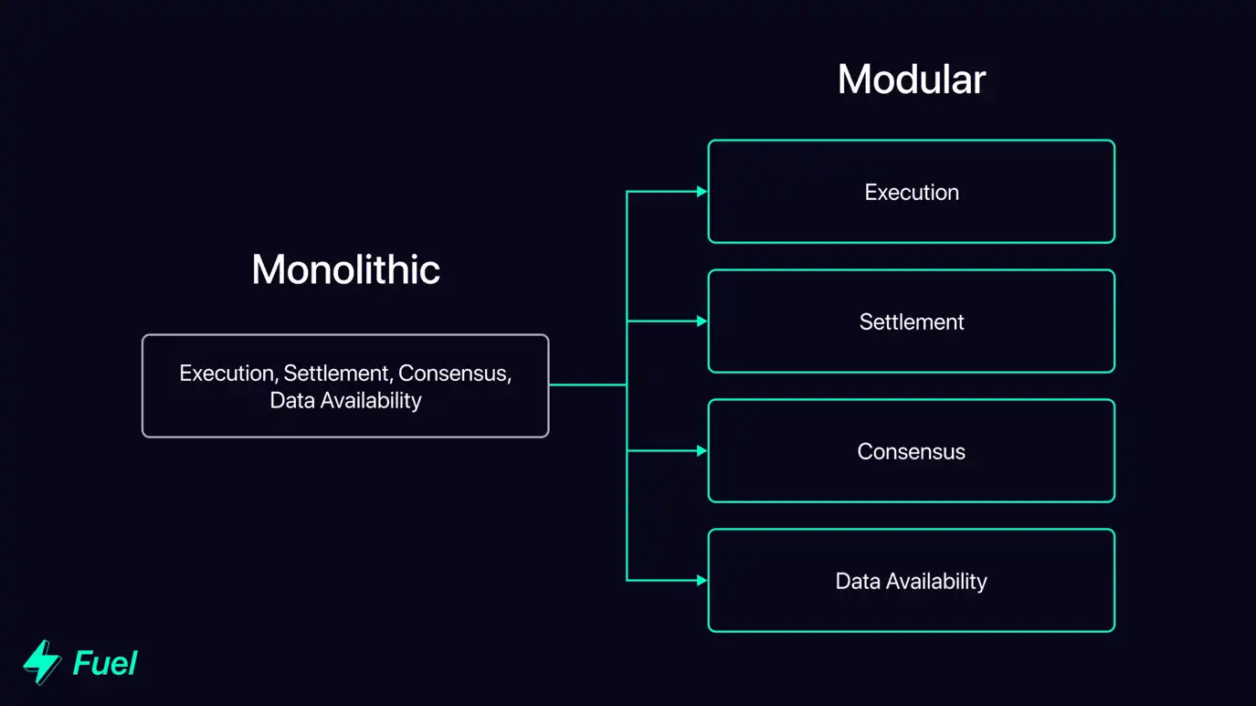 接下來通過談論 Fuel Labs 來結束這個話題,Fuel Labs 正在構建一個可與以太坊和 Celestia 實現的執行層,保持高安全性和去中心化的前提來擴展吞吐量。