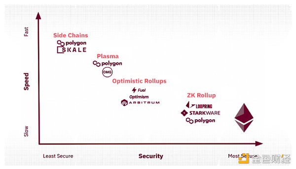 在比較各種 Layer-2 擴展解決方案時,重要的是要考慮它們在速度和安全性方面的差異,Optimistic rollups 和 Zero-knowledge rollups 通常被認為比側鏈和 Plasma 更安全,但它們的速度可能更慢并且執行能力也更有限,當在為特定場景選擇最合適的解決方案時,仔細權衡安全性和速度之間是非常重要的。