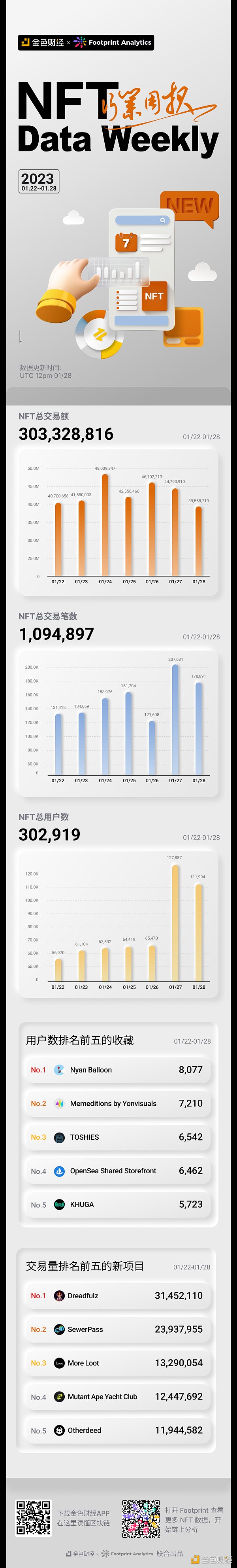 5、交易量排名前五的新項目:Dreadfulz、SewerPass、More Loot、Mutant Ape Yacht Club、Otherdeed
