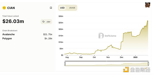 另一個就是目前專注于做 LSD 相關自動化策略的cian.app了,該項目倒是基本明牌空投,經常整活發各種 NFT,AMA 也說過 23年會發幣,看 TVL 數據的話增長也不錯。