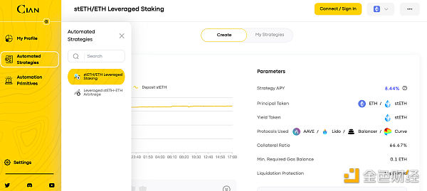 杠桿質押操作麻煩且Gas成本高,通過閃電貸就簡單多了,也需要自動化策略(參見下圖cian.app的策略)