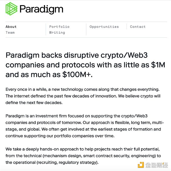 Paradigm 是一家投資公司,專注于支持未來的加密/Web3 公司和協議。我們的方法是靈活的、長期的、多階段的和全球性的。我們經常參與成立的最早階段,并隨著時間的推移繼續支持我們的投資組合公司。
