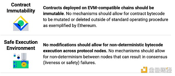 我們將安全性總結為兩個安全標準,它們代表了任何分叉 EVM 實施方案有資格獲得 Coinbase 支持的最低要求。