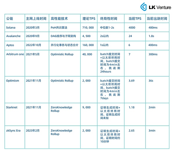 全鏈游戲各主要公鏈基礎設施的參數對比