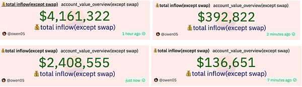 分析其收款地址 0x997cc123cf292f46e55e6e63e806cd77714db70f 做出分析得出,從 2023 年初至此獲利超過 4.5M USD (下圖左為 ETH 右則為 BSC ),而近一個季度受到 Memecoin Season 影響,獲利高達 2.5M USD。