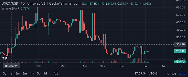 另外 UNCX 有發行了同名治理代幣 $UNCX 與獎勵代幣 $UNCL,但在代幣模型與價值捕獲這塊并無著墨,僅有老套的質押挖礦與回購燃燒代幣機制,燃燒甚至自 2021 年四月份后再也無紀錄,項目賺錢并無法有效地讓代幣持有者獲利,也導致治理代幣 $UNCX 幣價并未隨著項目的收益上漲而有所改變。