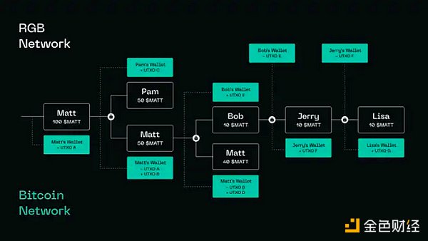 2. 在比特幣網絡上,Matt 的代幣發行對應于他當前持有的比特幣 UTXO(Unspent Transaction Output) A。