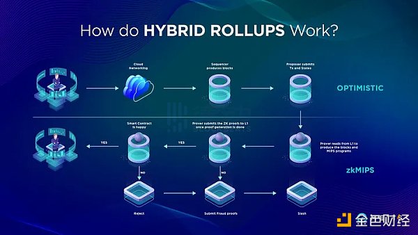 采用「Optimistic +ZK Rollups」這種混合型架構,可最大化程度地優化兩者優勢,這意味著,不僅可保留 Optimistic Rollup 架構,EVM 兼容,而且通用性零知識證明可最大化增強安全性,其有效性證可明確保鏈下交易的正確性,同時,防止操作者執行無效的狀態轉換。