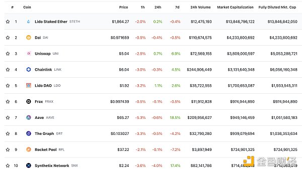 過去24小時去中心化交易所的交易量 數據來源:coingecko