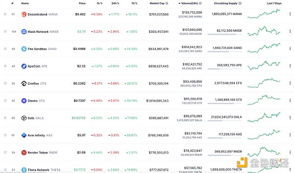 24小時NFT交易量、交易量前十項目 數據來源:Coinmarketcap