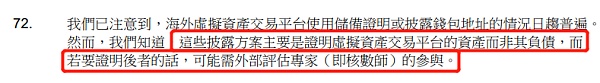 例如,在FTX暴雷后,很多交易所出具的Mazars的“儲備證明”,受到了公眾的質疑,因為其審計報告并沒有涉及內部財務報告控制的有效性。在SFC的咨詢文件里面,SFC也指明 “披露虛擬資產交易平臺的負債” 難度較大。