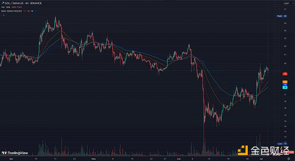 經過幾個月的盤整,直到 SEC 對 Coinbase 以及 Binance 進行起訴并將 SOL 列為證券,SOL 的價格開始崩潰,一度下跌至 12 美元左右。不過,最近 SOL 幾乎完全從 SEC 攻擊中恢復過來,因為 Solana 獲得了更多的支持,并且新的敘事似乎對價格產生了積極影響。