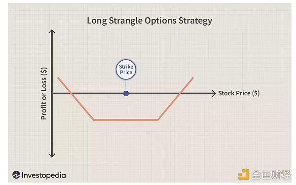 假設 ETH 的交易價格為 2000 美元。您買入一份執行價格為 1800 美元的看跌期權和一份執行價格為 2200 美元的看漲期權,每份期權費為 100 美元。如果 ETH 的價格跌至 1500 美元,您可以行使看跌期權并以 1800 美元的價格出售您的 ETH,您將獲得 100 美元的利潤(300 美元的差價減去 200 美元的溢價)。相反,如果價格跳至 2500 美元,您可以行使看漲期權并以 2200 美元的價格購買 ETH,從而獲得 100 美元的利潤(300 美元的差價減去 200 美元的溢價)。多頭寬跨式期權讓您能夠利用高波動性,同時將您的最大損失限制在所支付的總保費內。