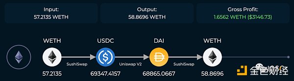 Source: odos.xyz/arbitrage如果我們有了一個開放區塊構建的 DS 市場,那么現在以太坊上的 MEV 供應鏈就會在 Rollup 上復現。其中,域內 MEV (Intradomain MEV) 指發生在 Rollup 內部的 MEV,這與以太坊 L1 的 MEV 并沒有太多差異。例如 DEX 中的三明治攻擊、跨 DEX 套利等等。因為目前 Rollup 還沒有實現 DS ,上圖以以太坊 L1 上的跨 DEX 套利作為舉例。