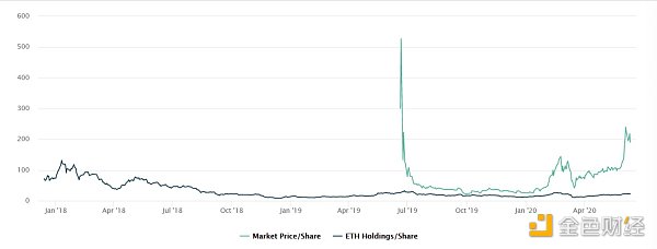 近期,由加密貨幣資產管理公司灰度投資推出的兩只著名旗艦基金——比特幣信托基金(GBTC)和以太坊信托基金(ETHE),因高溢價產生顯著套利空間,引發市場熱議。據灰度投資的歷史數據,這兩只基金自批準上市開始,交易價格較各自對應標的資產凈值(NAV)(根據TradeBlock XBX指數和 ETX指數)一直存在溢價。目前,GBTC的交易溢價30%,ETHE的交易溢價則高達850%。