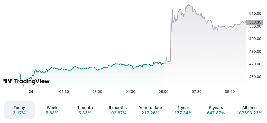 過去 24 小時內 Nvidia (NVDA) 股價。 來源:TradingView