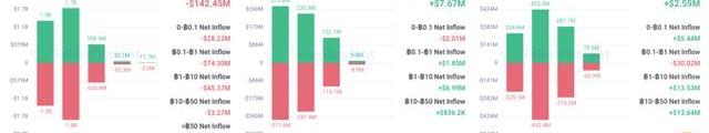而從資金流入/流出情況看,19日之后,比特幣、以太坊等主流數字資產市場的資金實際上處于凈流入狀態。24小時內,比特幣市場中資金凈流入達到2.5億美元,以太坊則達到3.3億美元。而從整體看,近一月來比特幣資金凈流出,以太坊等高收益率數字資產市場凈流入的趨勢并未改變,比特幣市值占比也依舊維持在45%以下的低水平。