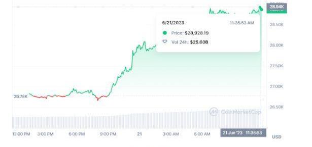 在撰寫本文時,比特幣交易價格為28,811美元,交易量為260億美元,漲幅超過75%。
