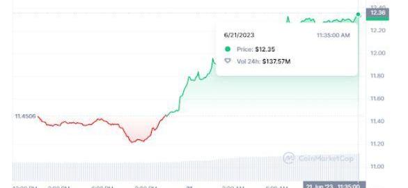 Avalanche是一個去中心化應用程序平臺,獲得了相當大的關注,在過去一天飆升了約7.2%。一周內,Avalanche實現了3.5%的穩健增長,展示了其潛力并吸引了投資者的關注。截至撰寫本文時,AVAX交易價格為12.30美元,24小時交易量攀升48%。