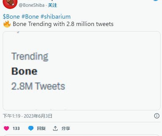 BoneShibaSwap(BONE)memecoin在加密Twitter上的社交情緒達到了一個新的里程碑,在推文中提到了280萬次。