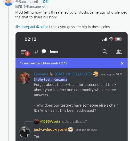 關于Shiberium是來自Rinia的撕裂鏈的指控;他們忘記更改鏈ID。