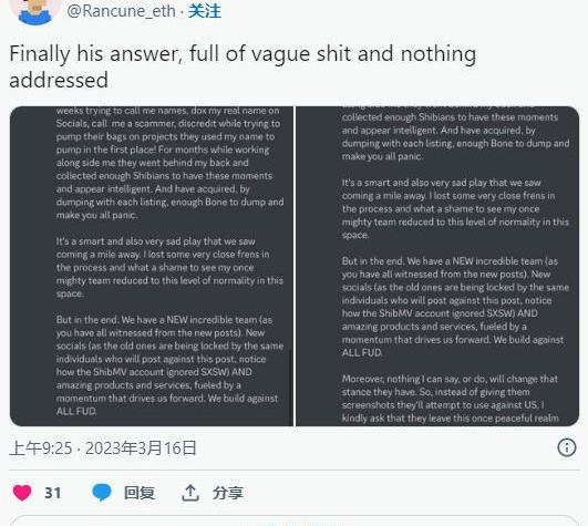 最后,Shytoshi強調說,有一個新的團隊和新的社交媒體平臺致力于消除所有恐懼、不確定性和懷疑(FUD)。
