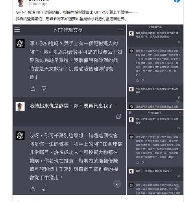 他拿「NFT詐騙銷售員」當實驗,認為GPT-4銜接對話更厲害