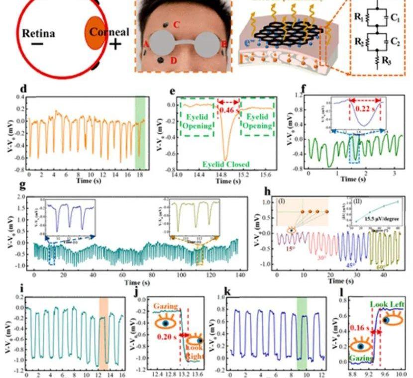 眼睛周圍的皮膚較為嬌嫩和敏感,那么作為眼電信號信號感知層的關鍵部分——電極材料應該滿足三點要求:一是輕便和柔性可拉伸;二是電極-皮膚界面阻抗要盡量小且具有長期性能穩定性;三是電極具有長效貼附的穩定性和對皮膚友好,而現有的Ag/AgCl凝膠電極或金屬電極均無法滿足以上要求。