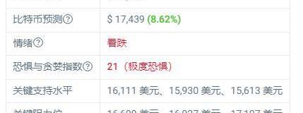 比特幣市場情緒目前看跌,恐懼與貪婪指數顯示極度恐懼。最值得關注的支撐位是16,111美元、15,930美元和15,613美元,而16,609美元、16,927美元和17,107美元是關鍵阻力位。