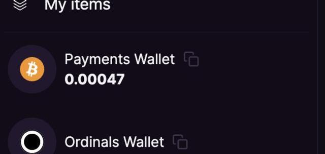 最后就是上架了,只要點擊右上角的錢包頭像,就會看到比特幣支付錢包和Ordinals錢包,點擊「Myitems」就可以前往比特幣NFT市場進行上架。