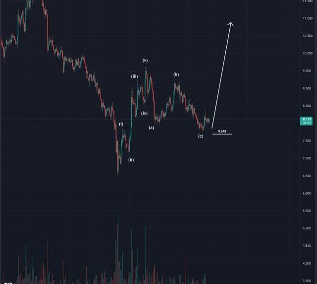分析師將EW應用于FXS,其中五個浪從低點上升,三個浪回到61.8%的斐波那契回撤水平。Bluntz_Capital預計FXS將繼續保持趨勢,山寨幣將上漲40%。談到FTM,專家建議在下跌17%后建立山寨幣多頭頭寸,如下面的價格圖表所示。據分析師稱,FTM已經完成了艾略特波浪模型。專家預測短期內以太坊競爭對手會反彈。