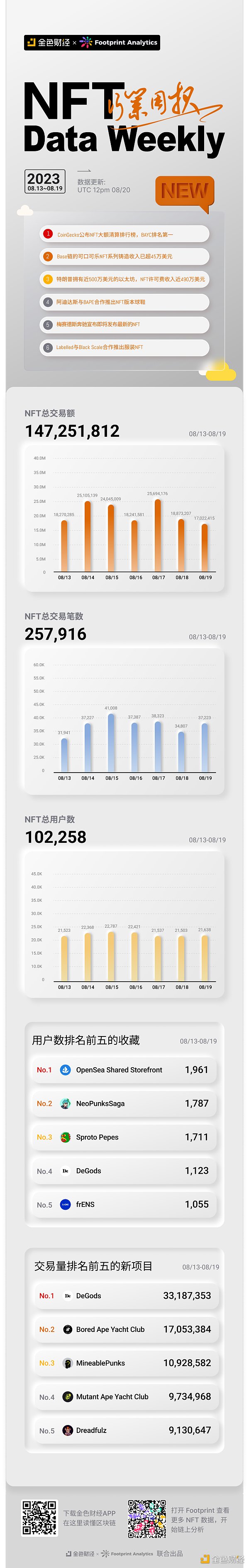 4、上周用戶數排名前五的收藏:OpenSea Shared Storefront、NeoPunksSaga、Sproto Pepes、DeGods、frENS