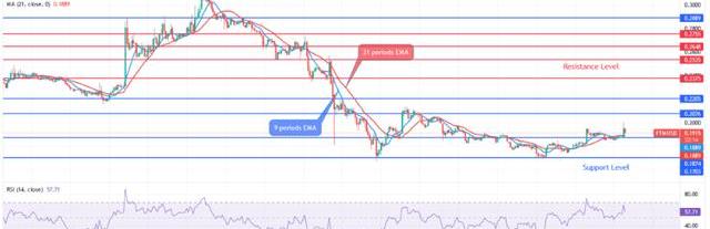 Fantom看漲中期前景。多頭目前正在積聚推高價格的勢頭。測試了0.18美元的低位支撐位,價格盤整了幾個小時。多頭正在逐漸獲得壓力。價格上漲至0.20美元的阻力位。