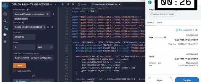 據《Decrypt》報導,數位藝術家JohnnyShankman近日上傳一支影片,展示在27秒發行完迷因幣EASY_MONEY的過程,并強調僅供教育用途,也沒有正式推上以太坊主網。有趣的是,他完全沒有親自撰寫智能合約,而是只透過以下2步驟就完成:
