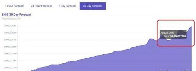 盡管大多數山寨幣整個月都出現了顯著上漲,但柴犬的價格仍然相對穩定。然而,一種廣泛使用的采用機器學習算法的價格預測工具預測SHIB在不久的將來會出現小幅上漲。根據最新數據,PricePredictions預計SHIB到2023年8月25日的交易價格為0.000007828美元。這一預測表明價格將出現小幅上漲。