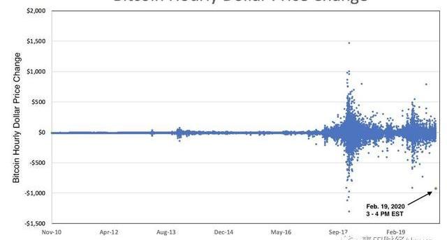 ArkInvest加密貨幣分析師亞辛·埃爾曼德拉援引CoinMetrics的數據稱,這次超過1000美元的下跌是自2017年以來每小時發生的“第五大回調”。