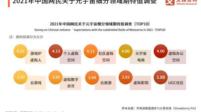 在元宇宙的細分領域中,網民期待值較高的大多為泛娛樂領域。艾媒咨詢分析師認為,目前元宇宙雛形大多在泛娛樂層面,且用戶興趣度及期待度較高,因此大多資本集中在泛娛樂領域發力。