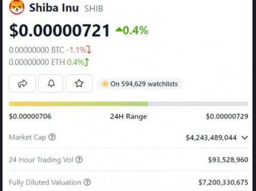 截至發稿時,柴犬的交易價格為0.00000722美元,在24小時日內交易中上漲0.5%。SHIB也較2021年10月創下的歷史高點0.00008616美元下跌了91.64%。