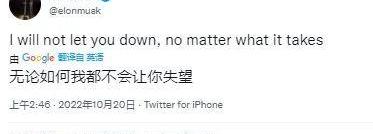 馬斯克喊:我不會讓你失望!