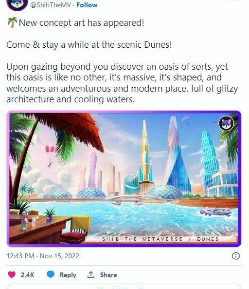 ShibaInu的“SHIBtheMetaverse”最近公布了其名為Dunes的新概念藝術。幾周后,一個新的更新被揭露,看起來對期待已久的元節項目很有希望。