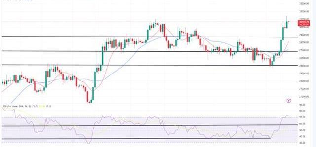 這使得比特幣攀升至去年6月6日以來的最高水平,當時價格高于31,400美元大關。