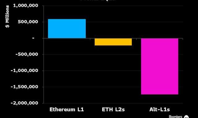 Billions項目組根據他的圖表,以太坊網絡在2023年第二季度實現了超過5億美元的利潤,而其他Layer-1項目的利潤則下降了超過15億美元。