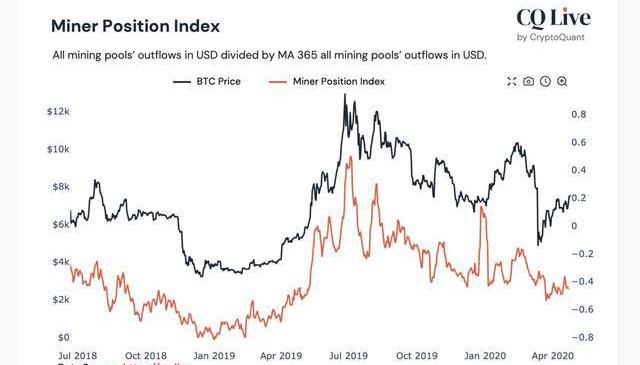 礦工流入交易所百分比數據集可以讓市場參與者發現礦工賣壓的峰值,而礦工頭寸指數使我們能夠了解他們持有或出售比特幣的趨勢。